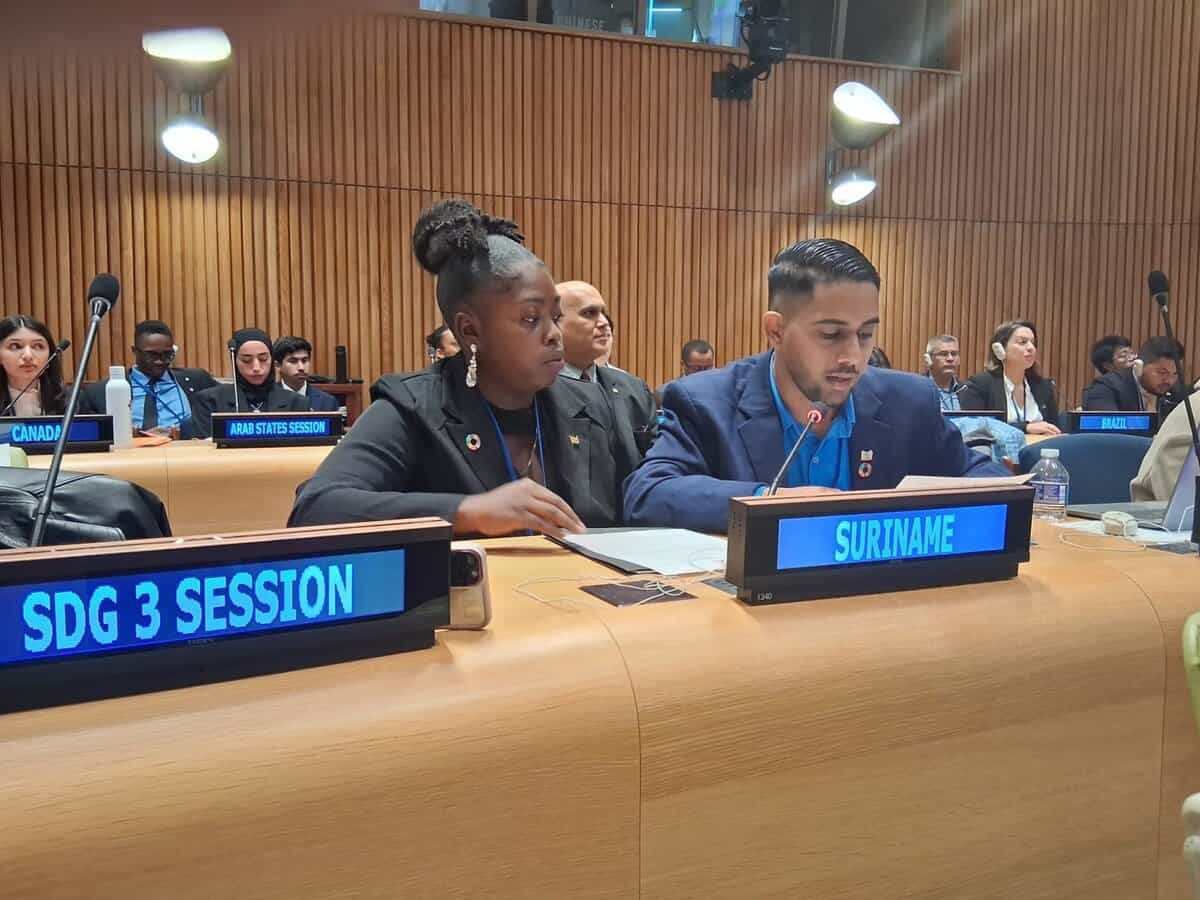 De Surinaamse SDG Jeugdambassadeurs Drusilla Reinhard-Blinker en Amrish Lalsa nemen van 15 tot en met 17 april deel aan het ECOSOC Youth Forum 2025 in New York, waar jongeren wereldwijd samenkomen om te spreken over duurzame ontwikkeling.