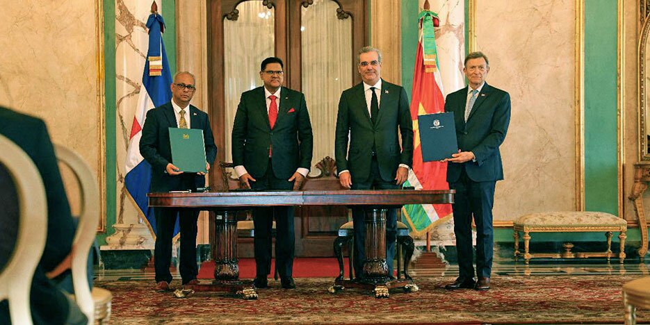 De documenten werden op 5 oktober 2023 ondertekend door president Chandrikapersad Santokhi van Suriname en zijn Dominicaanse ambtgenoot Luis Abenader in het paleis van president Abenader. Na de ondertekening toonde het Surinaamse staatshoofd zich uiterst positief over de samenwerking en nodigde hij de Dominicaanse president tijdens een persconferentie uit voor een bezoek aan Suriname.