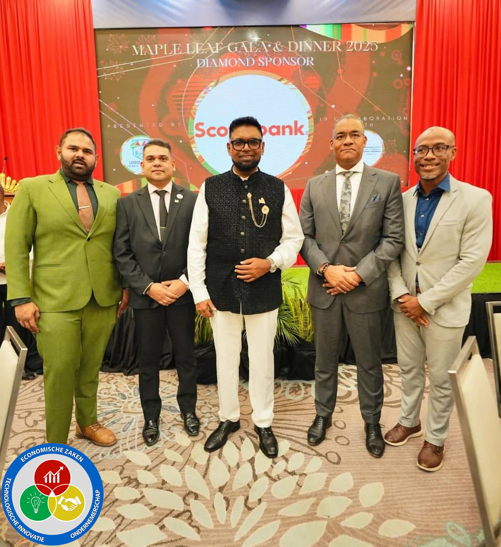 Minister Andrew Baasaron (EZOTI) nam in Georgetown deel aan het galadiner ter afsluiting van de International Business Conference (IBC) 2025. De ontmoeting benadrukte de hechte relatie tussen Suriname en Guyana en de gezamenlijke inzet om handel, toerisme en industrie te versterken.