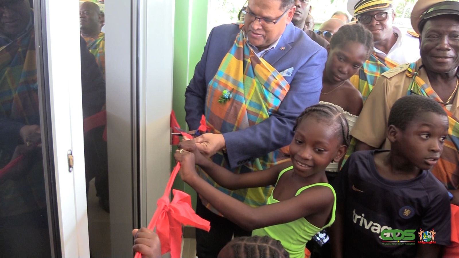 Op Atjoni had president Chandrikapersad Santokhi de eer de opening te verrichten, in bijzijn van onder andere de Curaçaose minister van Volksgezondheid Javier Silvania en vertegenwoordigers van de Pan-Amerikaanse Gezondheidsorganisatie (PAHO). Het staatshoofd memoreerde de opening van de moderne poliklinieken op Koewarasan en aan de Derde Rijweg; binnenkort is het de beurt aan Moengo. “Wij willen als regering de eerstelijnszorg gereed hebben en een gezonde leefstijl promoten in alle gebieden”, aldus president Santokhi, die meedeelde dat binnenkort medicamenten die middels een schenking van de Republiek India verkregen zijn, landelijk gedistribueerd zullen worden. Verder zal een Indiaas bedrijf medicijnen produceren in Suriname die 35 procent minder dan de importprijs zullen kosten. “Dus medicijnen worden straks binnen bereik en betaalbaar voor eenieder.”