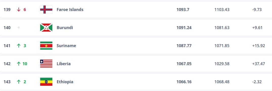 Suriname is maar liefst drie plekken gestegen op de FIFA-ranking die donderdag werd gepubliceerd door de FIFA. Natio klimt van de 144ste plek naar de 141ste plek. Deze stijging komt door de sterke start van het WK-kwalificatietoernooi dat eerder deze maand is begonnen.
