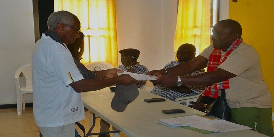 Tijdens een ceremonie op Latour op zaterdag 29 maart 2025 overhandigde Nabesing Ajeki, vertegenwoordiger van het directoraat Duurzame Ontwikkeling Afro-Surinamers Binnenland (DOASB), namens het ministerie de langverwachte documenten aan kapiteins en andere traditionele gezagsdragers.