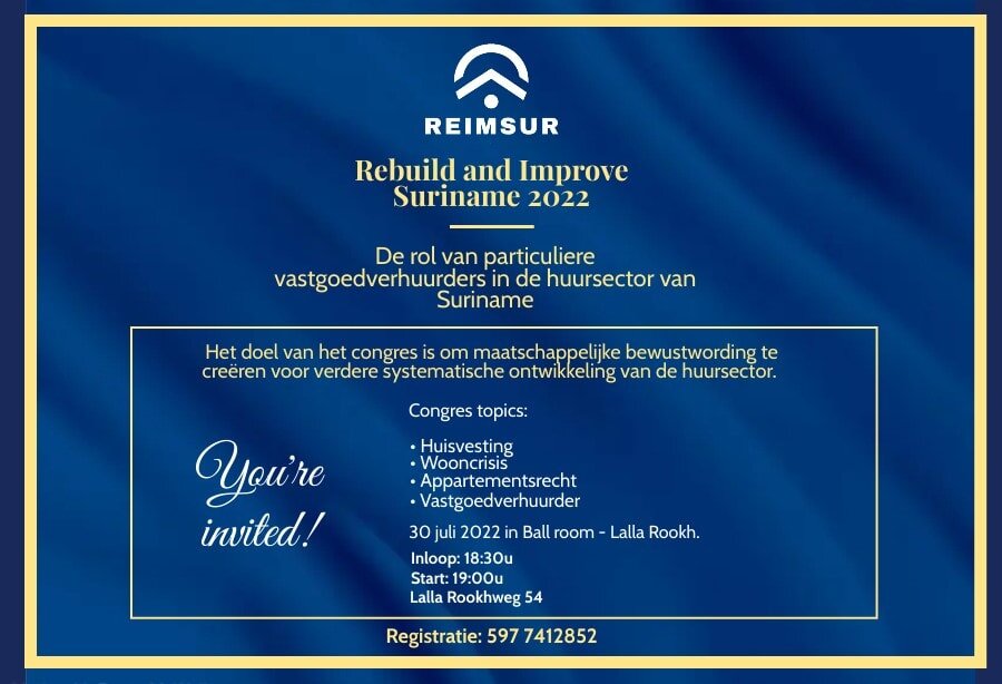 Stichting Rebuild and Improve Suriname organiseert een vastgoed verhuur congres voor vastgoedverhuurders. Daarbij komt de rol van deze groep aan de orde. “Het doel van dit congres is om maatschappelijke bewustwording te creëren voor verdere systematische ontwikkeling van de huursector”, zegt Rosito Pansa, de voorzitter van Stichting Rebuild and Improve Suriname.