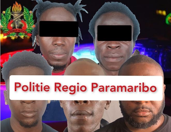 Het Regio Bijstand Team Paramaribo (RBTP) heeft na een gedegen onderzoek op diverse locaties de vijf verdachten P.M. (29), O.S. (24), L.B. (32), D.R. (38) en G.C. (33) in de kraag gevat.
