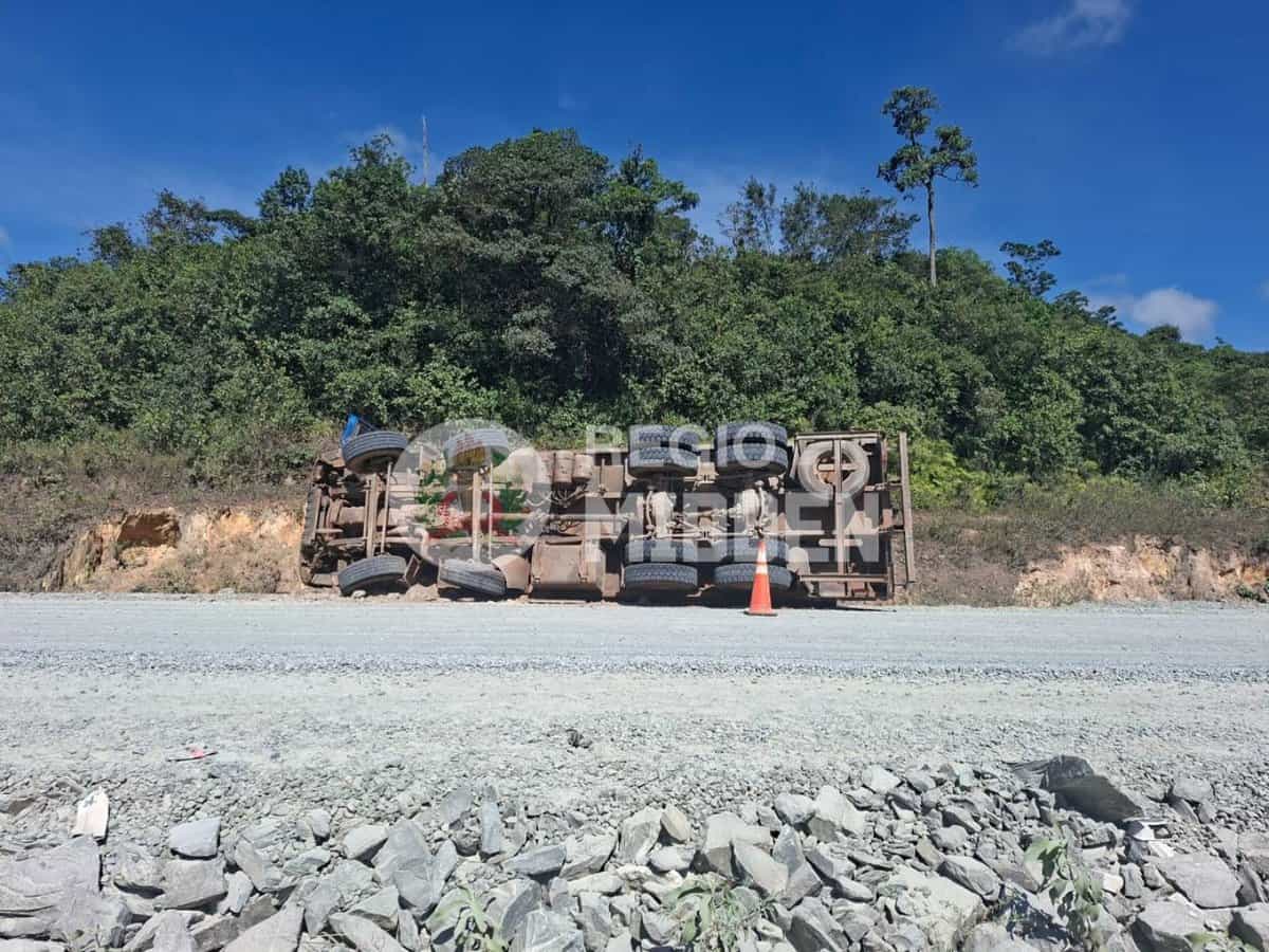 Een vrachtwagen is zaterdagochtend, 6 december 2025, gekanteld op de weg naar het dorp Nieuw Koffiekamp in het district Brokopondo. De bestuurder raakte gewond en is voor medische behandeling overgebracht naar de medische post (medic) van goudbedrijf ZiJin.