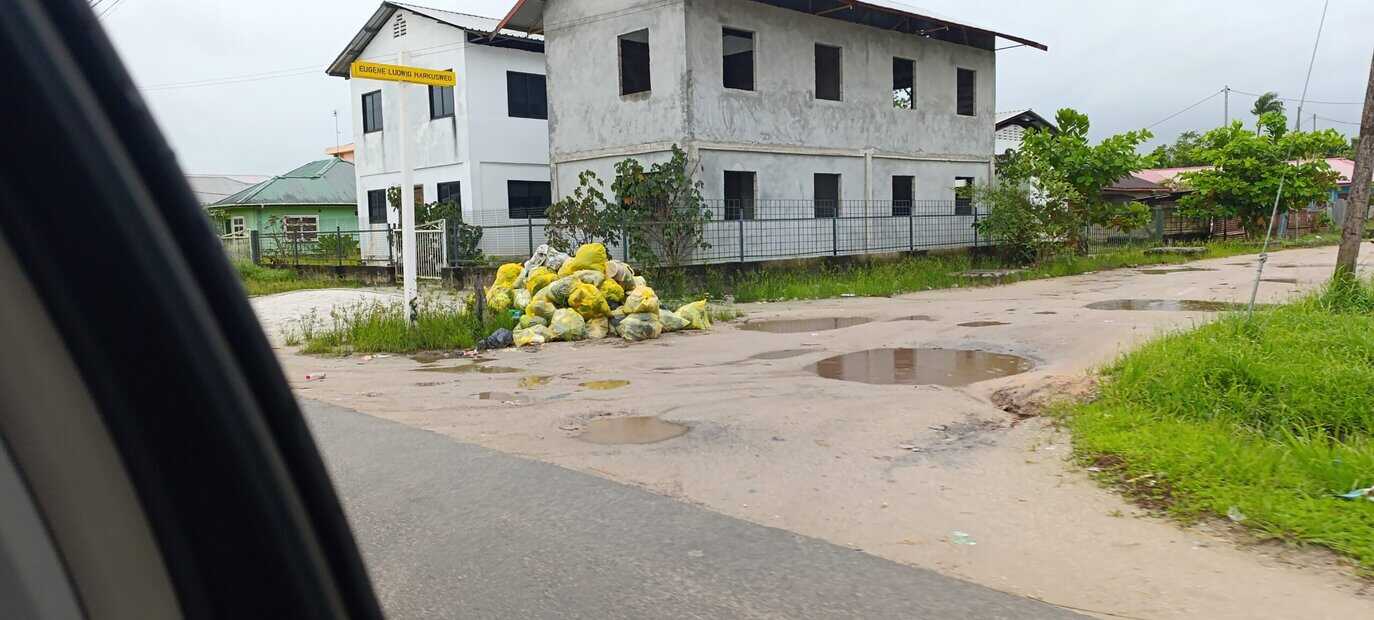 Het district Para kampt met problemen wat betreft vuilophaal door een achterstand in de betaling van de ondernemer die daarmee belast is. Bijna op alle hoeken van de straten en op bermen staan gele afvalzakken.