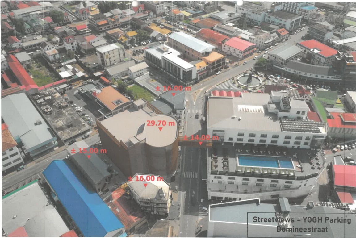 Afgelopen week trok Stichting Gebouwd Erfgoed Suriname aan de bel dat Yogh Hotel bezig was illegaal een parkeergebouw van meer dan 30 meter hoog te bouwen. Volgens SGES zouden er 10 niveaus zijn die worden ingericht als parkeergarage. Yogh N.V. heeft de indiening gedaan via Sintec, na de informatie van de coördinator van Yogh N.V. Bij de aanvraag is er toestemming gevraagd voor het bouwen van een parkeerhaven met 8 verdiepingslagen, dus geen 10, en in totaal ongeveer 25.3 m hoog is, dus niet 30 m, geeft Yogh Hotel aan in de berichtgeving.